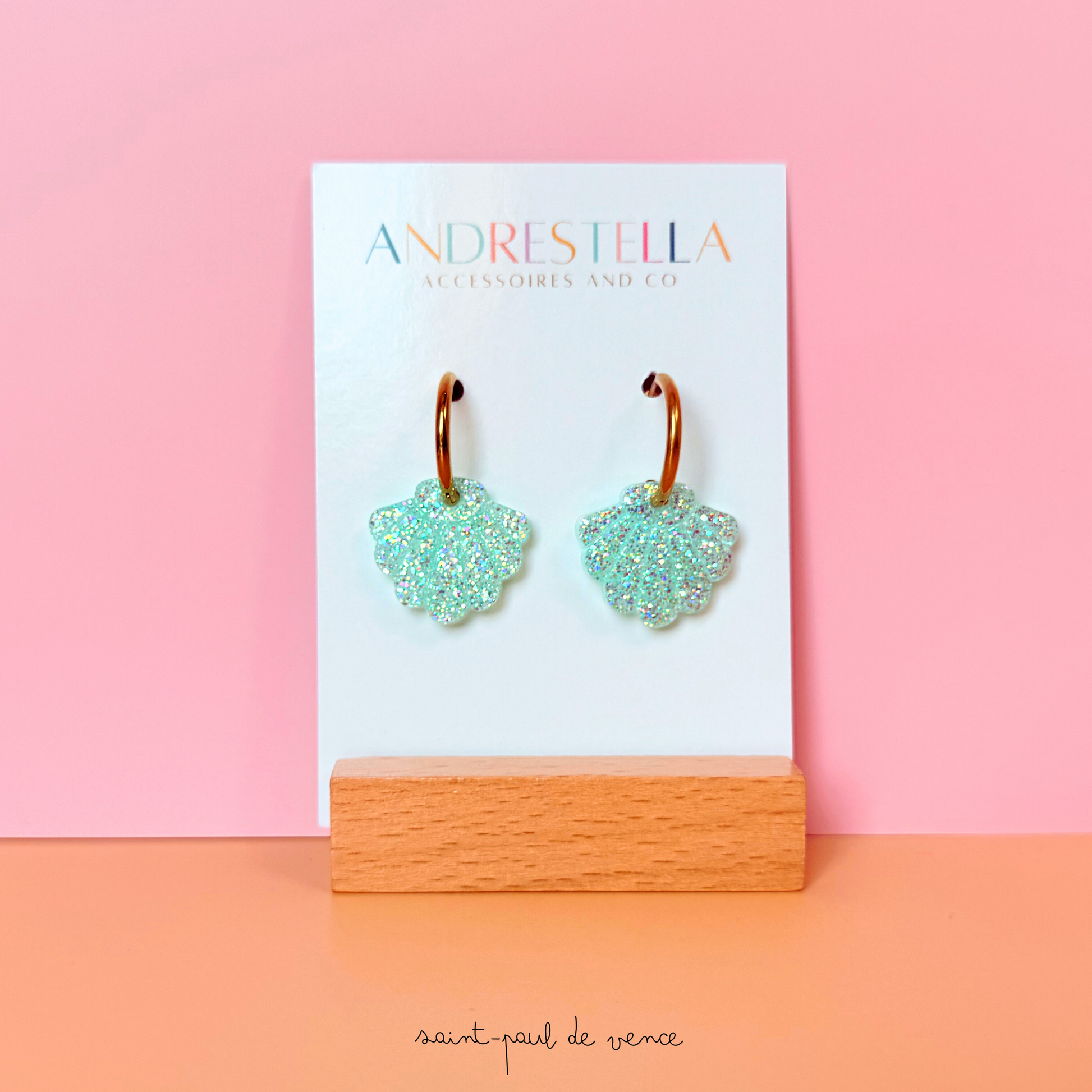 Laisse entrer la couleur et la fantaisie dans tes looks avec nos PAMPILLES coquillage turquoise clair pailleté.