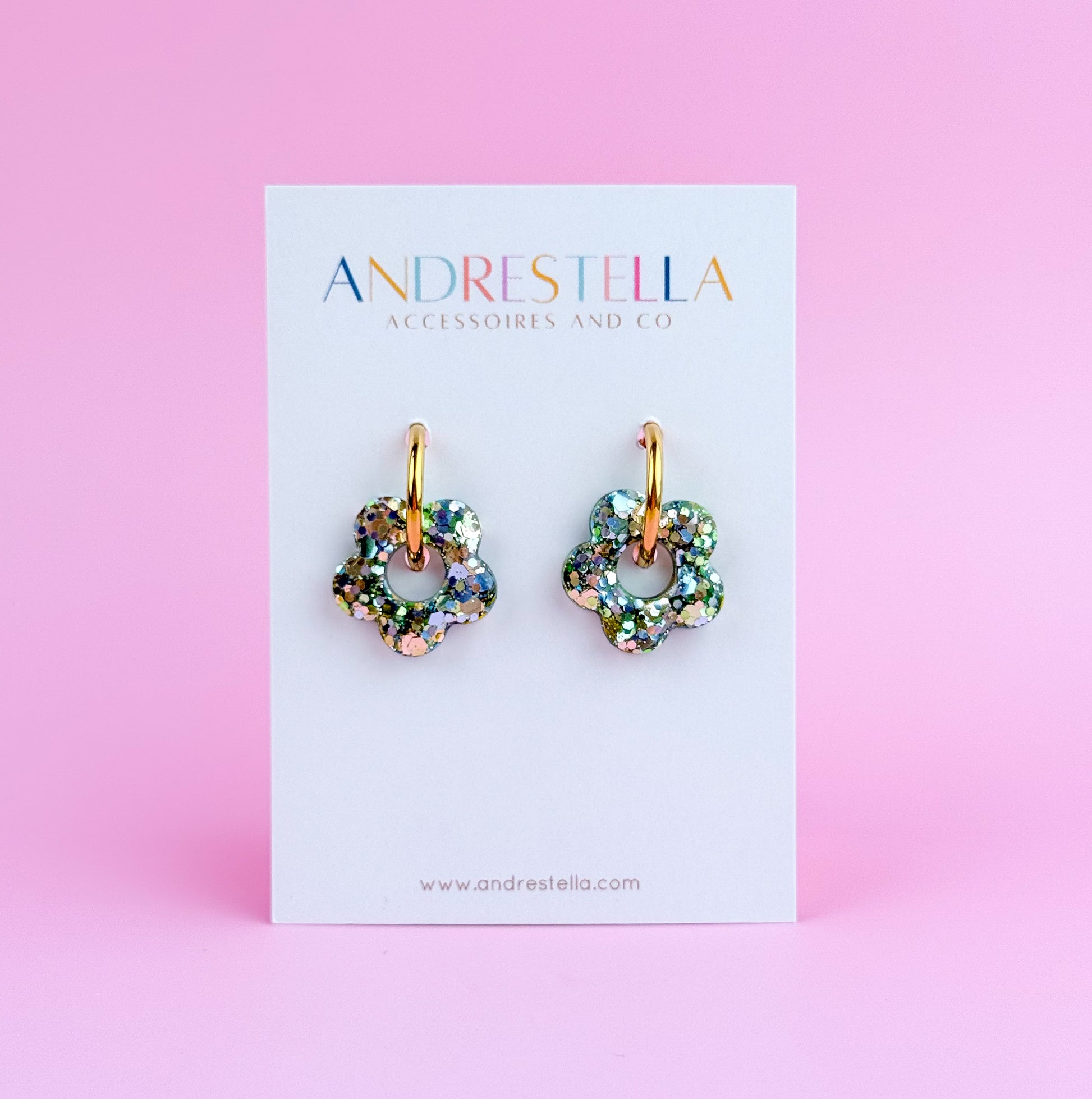 Chaque pièce est unique : les confettis se déposent différemment à chaque création, faisant de chaque paire un petit trésor fait main.