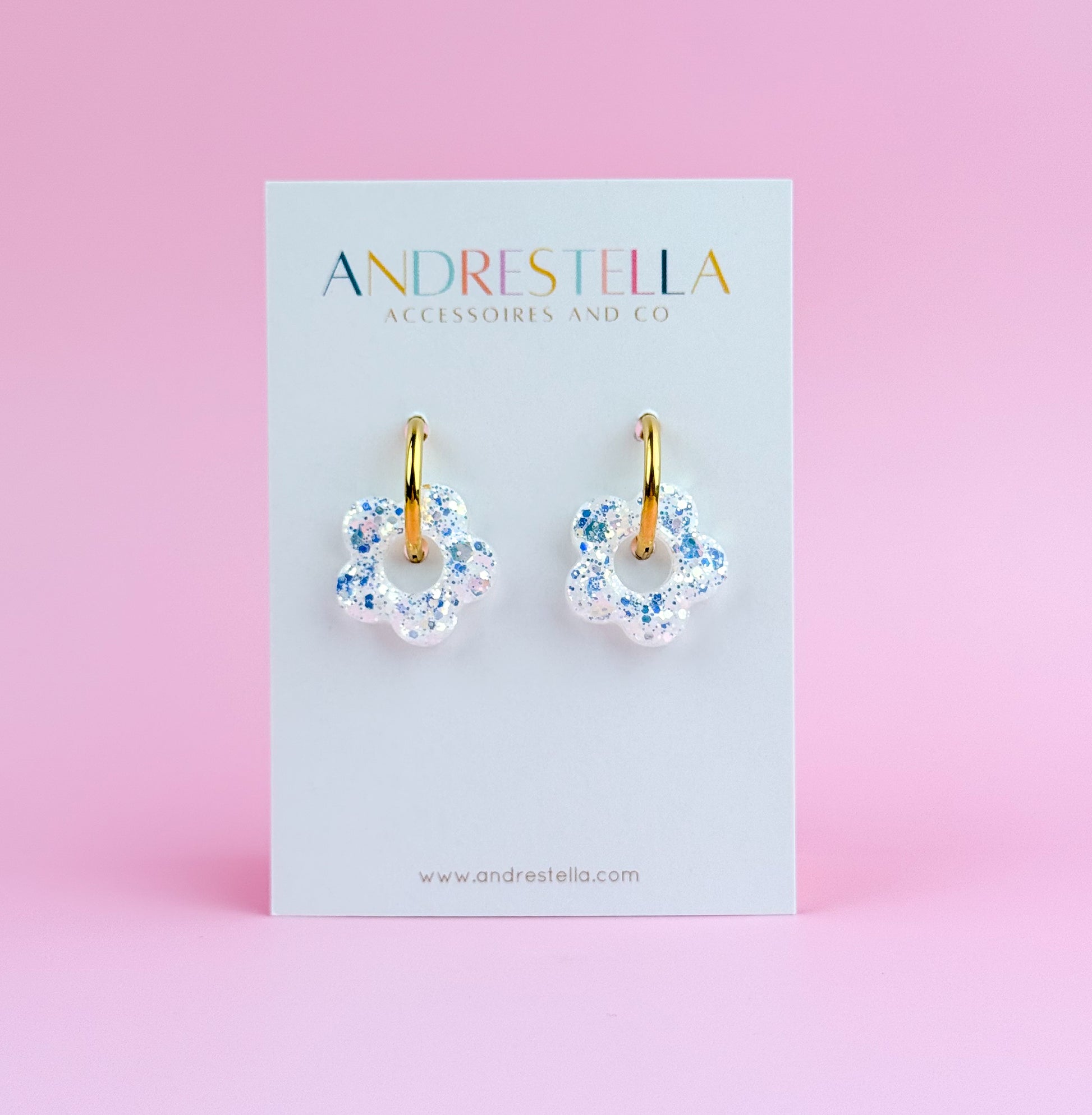 Chaque pièce est unique : les confettis se déposent différemment à chaque création, faisant de chaque paire un petit trésor fait main.