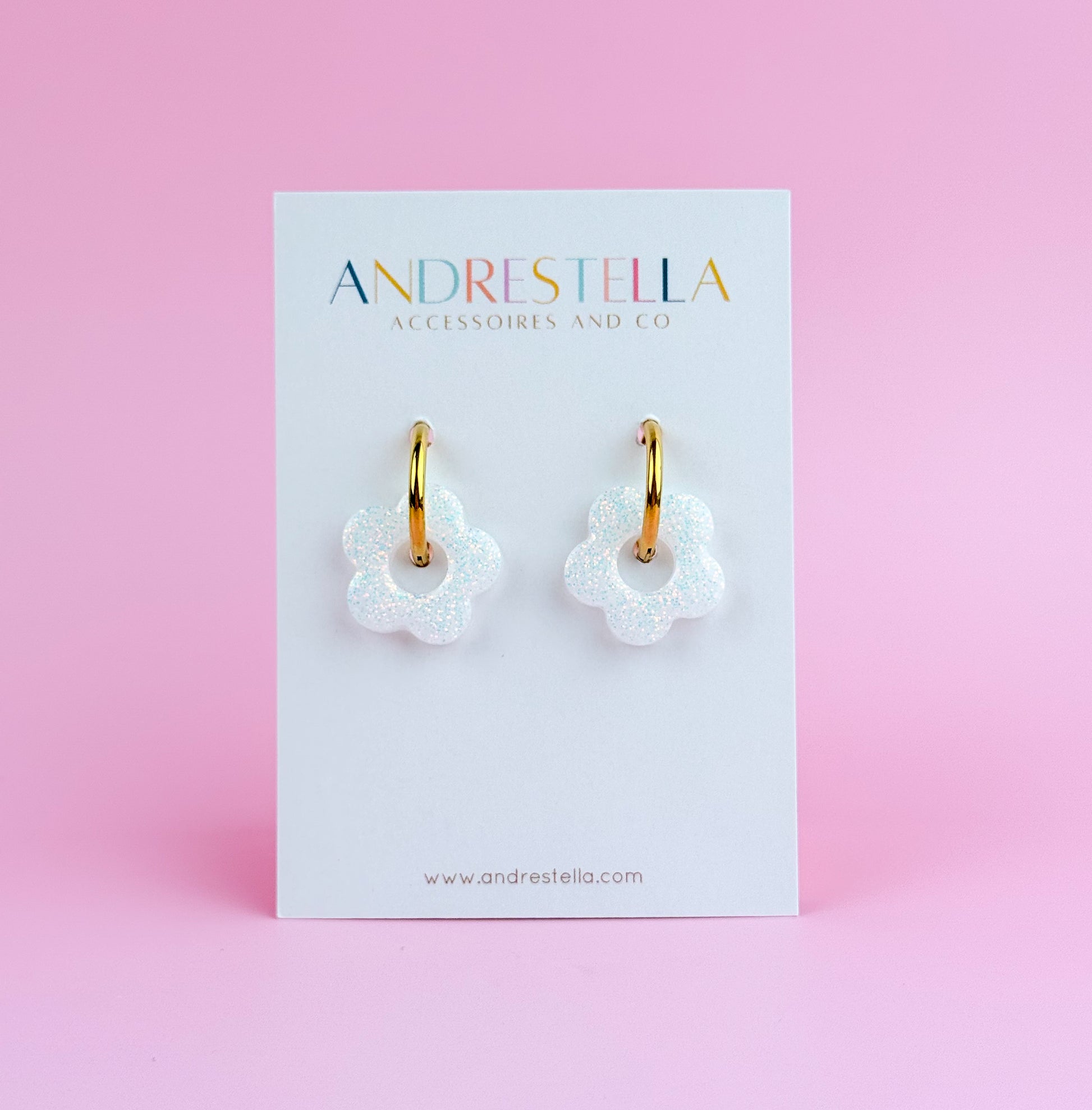 Chaque pièce est unique : les confettis se déposent différemment à chaque création, faisant de chaque paire un petit trésor fait main.