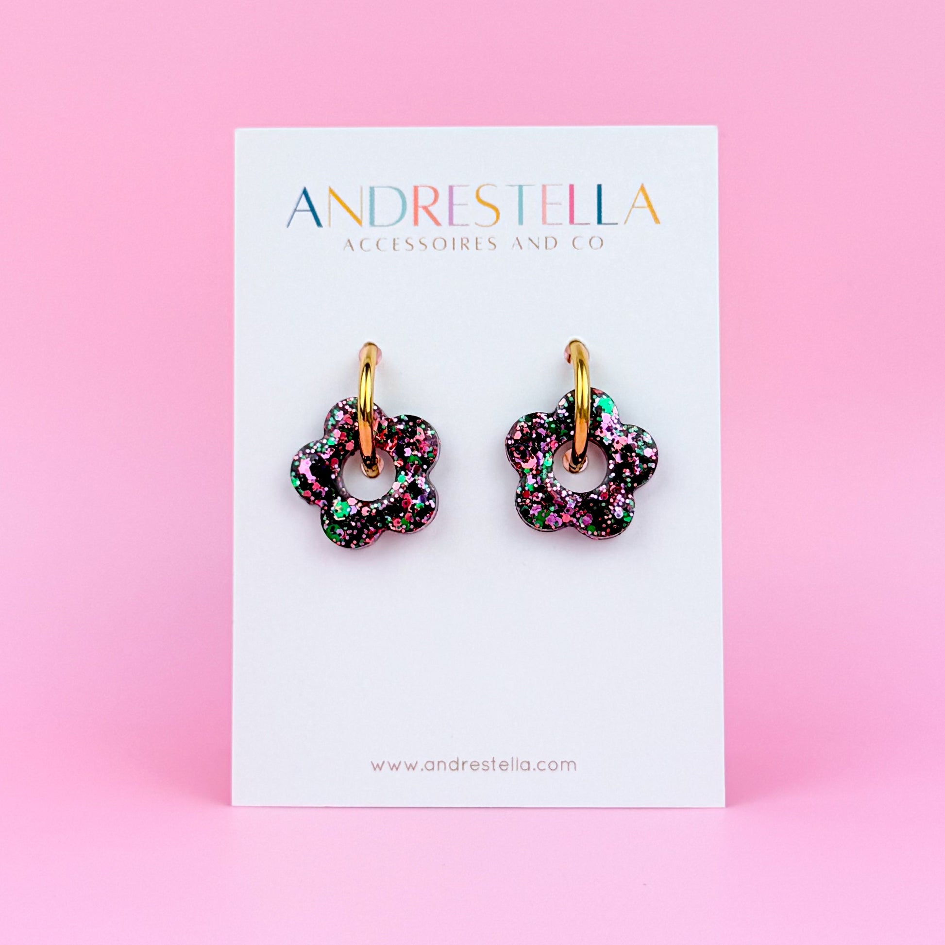Chaque pièce est unique : les confettis se déposent différemment à chaque création, faisant de chaque paire un petit trésor fait main.