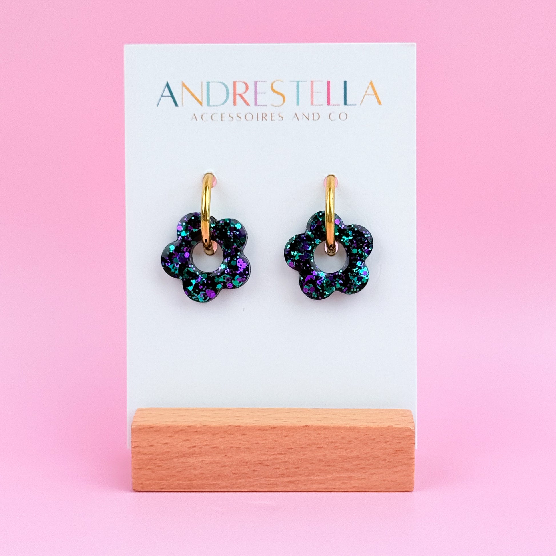 Chaque pièce est unique : les confettis se déposent différemment à chaque création, faisant de chaque paire un petit trésor fait main.