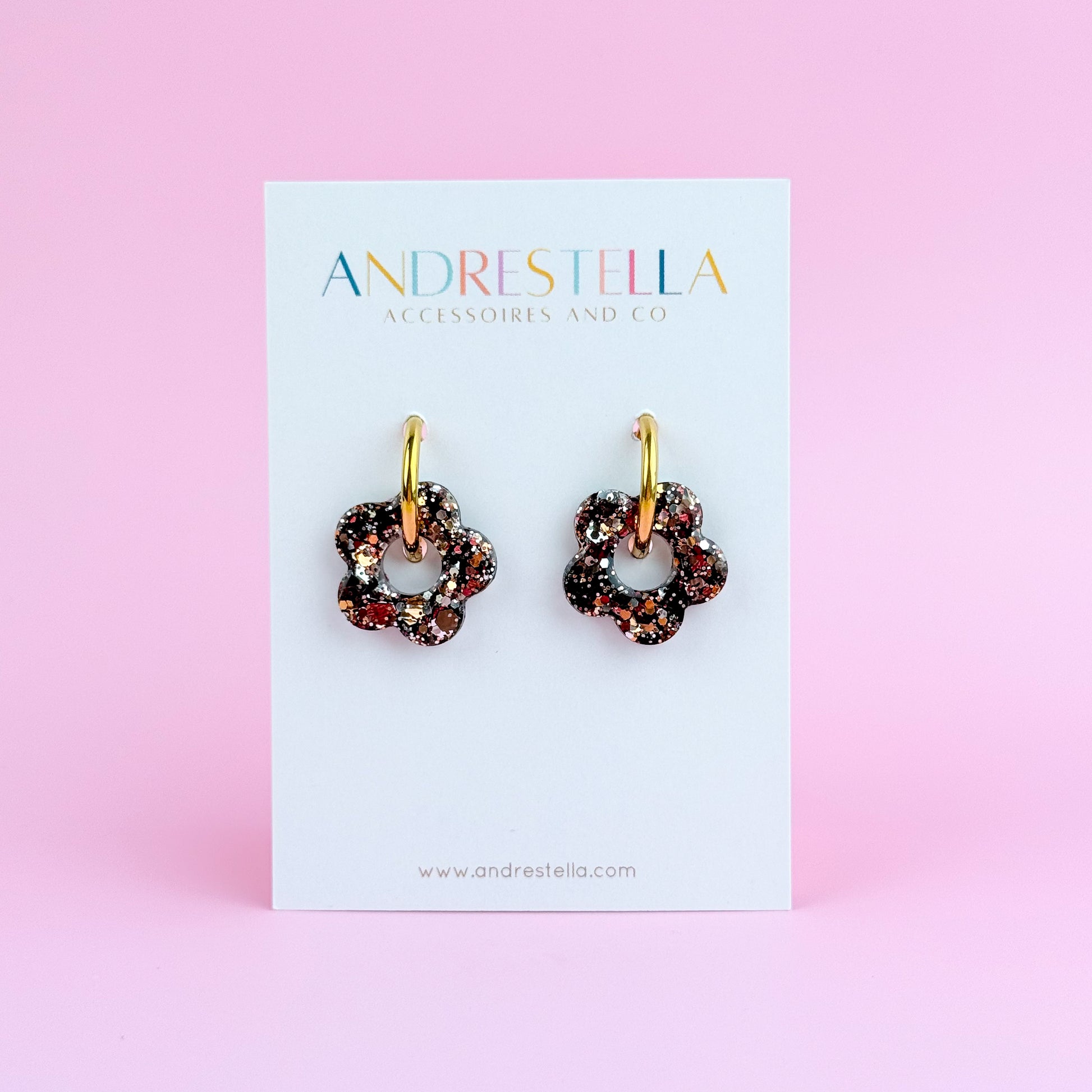 Chaque pièce est unique : les confettis se déposent différemment à chaque création, faisant de chaque paire un petit trésor fait main.