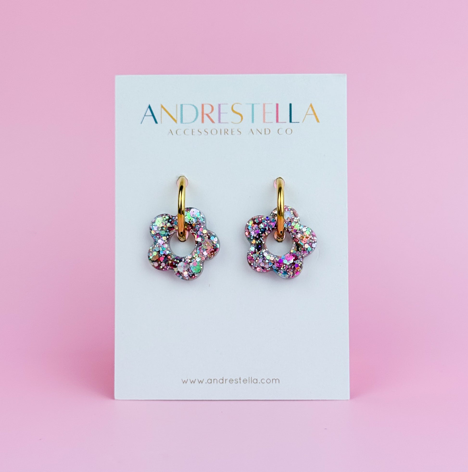 Chaque pièce est unique : les confettis se déposent différemment à chaque création, faisant de chaque paire un petit trésor fait main.