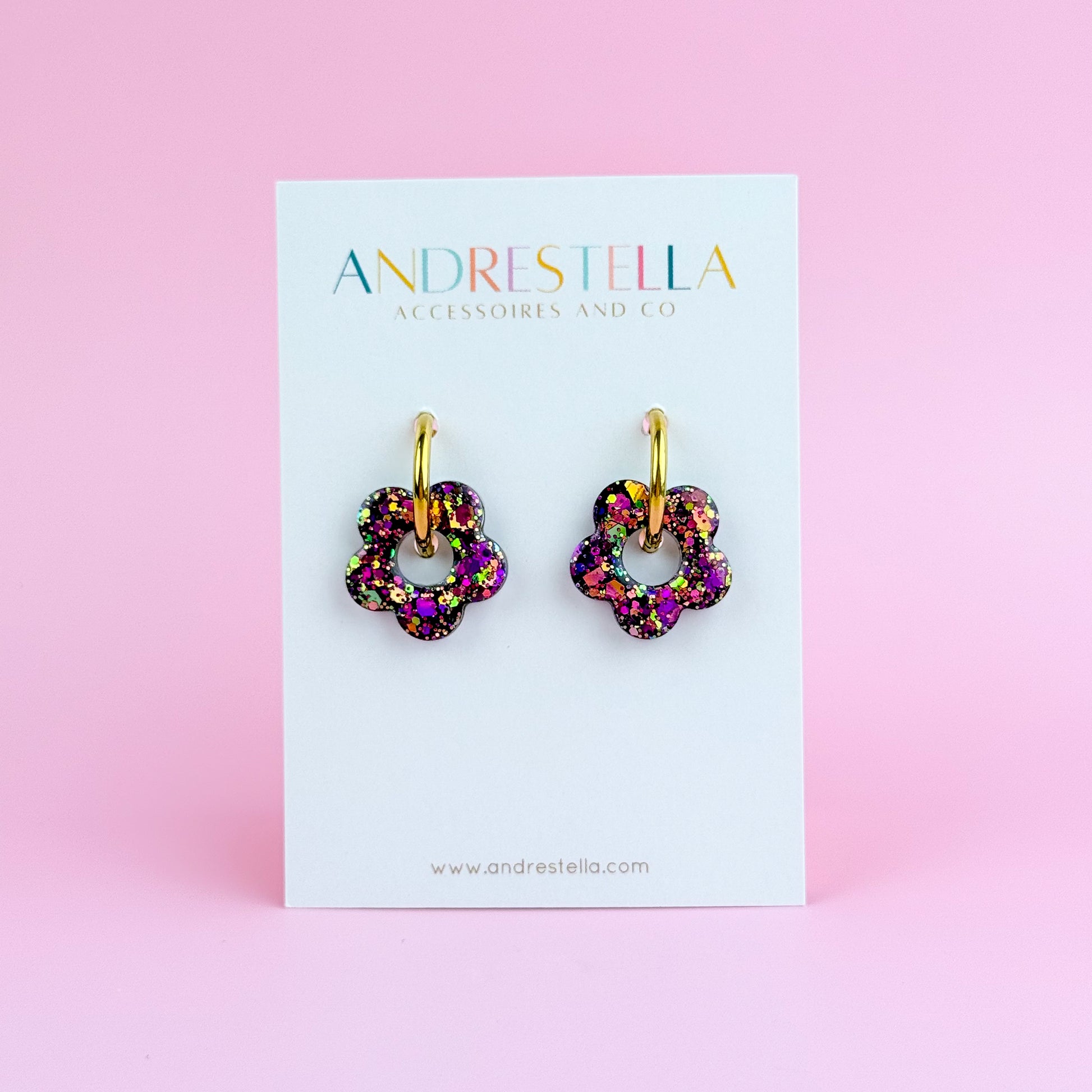 Chaque pièce est unique : les confettis se déposent différemment à chaque création, faisant de chaque paire un petit trésor fait main.