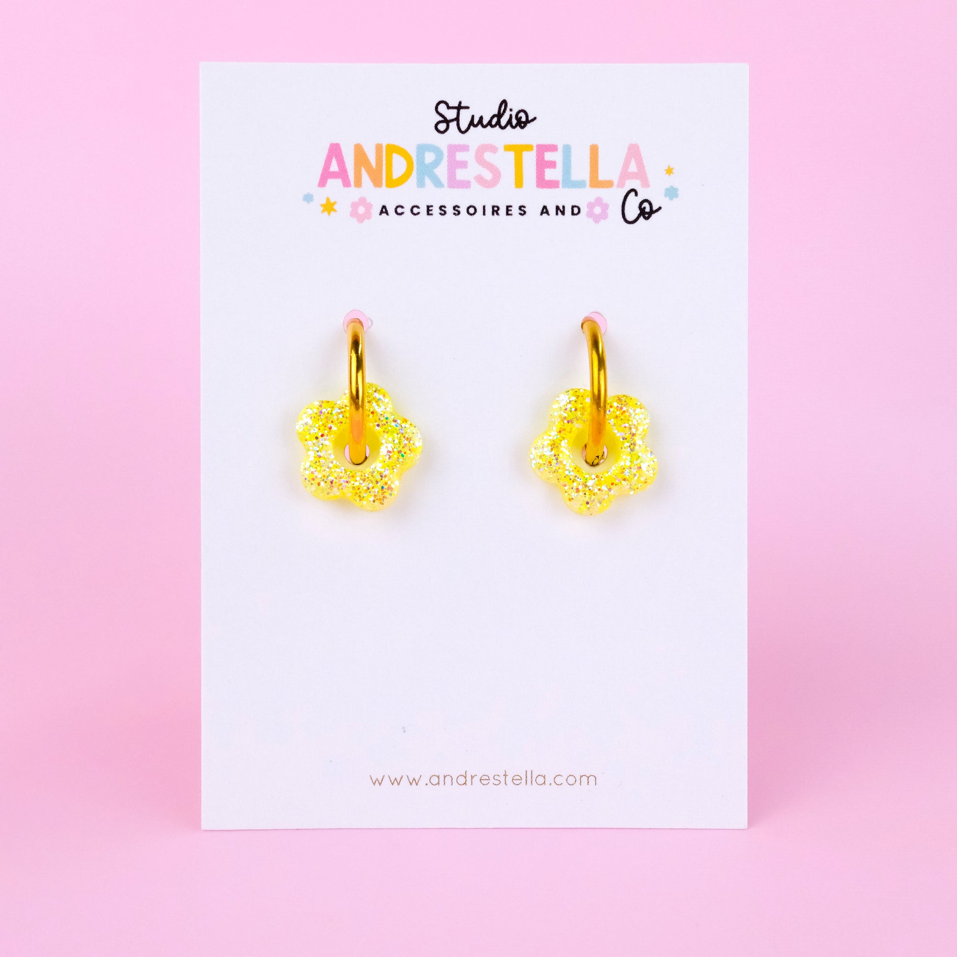 PAMPILLES MINI FLEUR JAUNE PAILLETE
